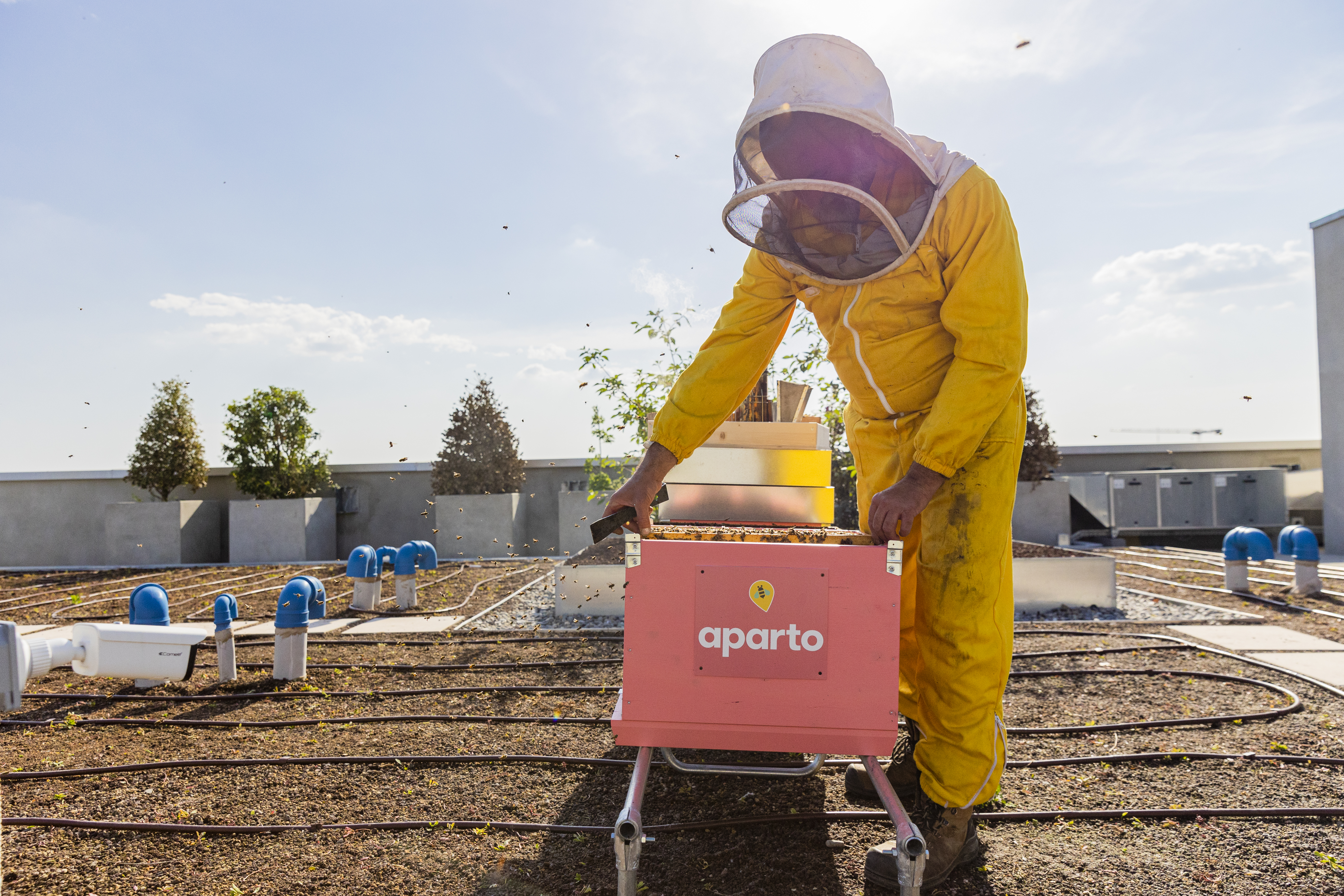 aparto is also the Bees’ “home”  250 thousand bees produce about 40kg of fresh honey, pollinating an average of 60 million flowers a day. The floristic biodiversity should guarantee a production of honey … unique in its kind! Apicoltura takes care of our rooftop beehives hosted at Milan Giovenale.