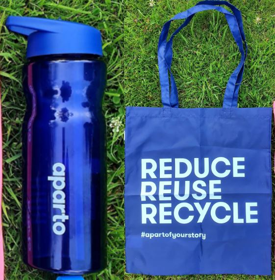 When our residents join the aparto family - they are welcomed by our friendly team and our nice aparto gifts! All of the welcome gifts are environmentally friendly, including the aparto lanyards, aparto's famous reusable water bottles made from ocean plastic and our reduce-reuse-recycle tote bags, also made from recycled water bottles.