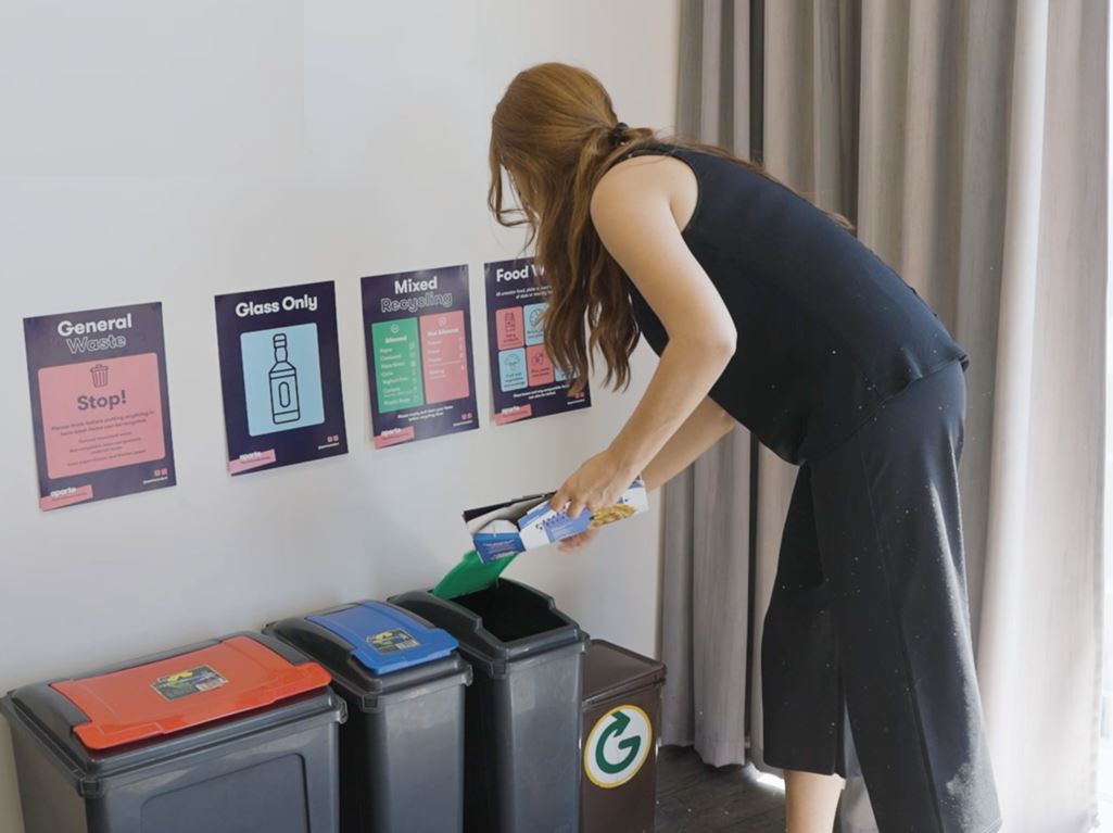 In all of our residences we actively encourage our residents to recycle and dispose of waste in the correct way. We provide separate bins throughout the residences that are for recycling and general waste.